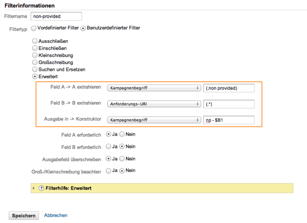5 Vor kurzem hat Google die gesamte Online-Marketing-Branche mit der Einführung der verschlüsselten Suche und (non-provided) keyword-data regelrecht schockiert. Laut Google soll das Verstecken von Keywords aus der organischen Suche die Privatsphäre der Besucher schützen. Manche Branchen-Blogs berichteten, dass etwa 20 Prozent der Keywords aus der organischen Suche nicht mehr in den Statistiken auftauchen. Natürlich ist dieser Wert etwas übertrieben, da im Normalfall etwa 1 bis 2 Prozent der Suchbegriffe als “non-provided”-gekennzeichnet werden. Mit einem Filter bei Google Analytics kann man, neben den “non-provided” Keywords, die passende Landingpages anzeigen. Somit sieht man zumindest, auf welche Landingpages die User landen. Bei einer sauberen Onpage-Struktur kann man die Keywords mehr oder weniger ableiten, es sei denn, man geht zu weit ins Long Tail. Es ist wichtig, ein neues Profil für diesen Filter zu erstellen, weil die kompletten Daten aus dem originalen Account modifiziert werden.