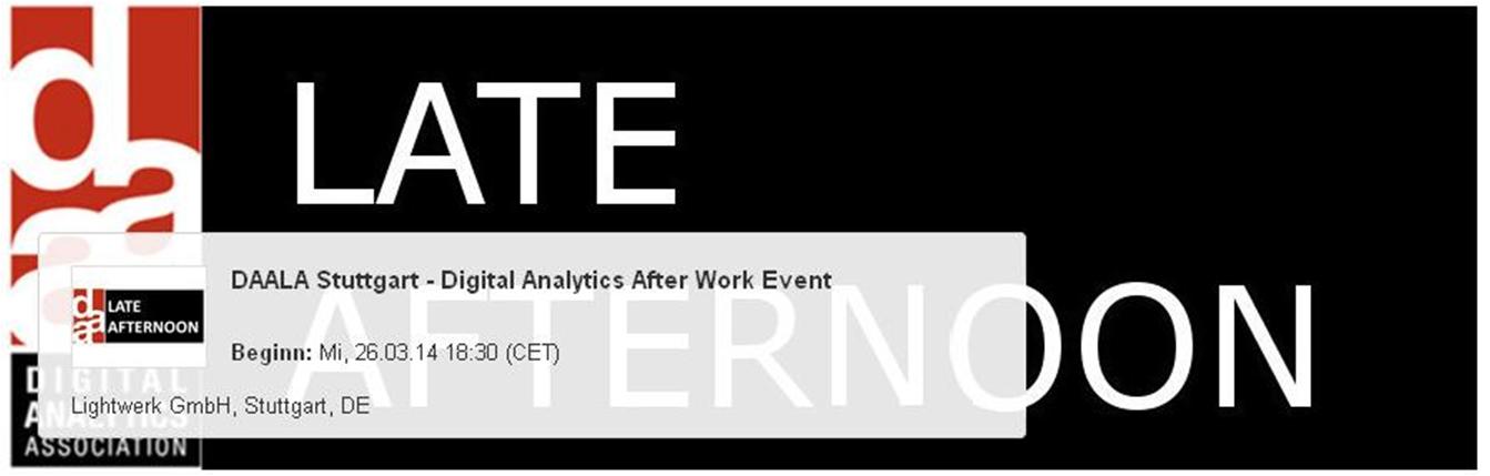 Der Frühling ist da und bringt gleich eine interessante Veranstaltung mit: den Digital Analytics Association Late Afternoon, kurz DAALA – das Digital Analytics After Work Event am 26. März 2014. Zeitgleich findet diese Veranstaltung in Stuttgart, Berlin, Hamburg und Köln statt.